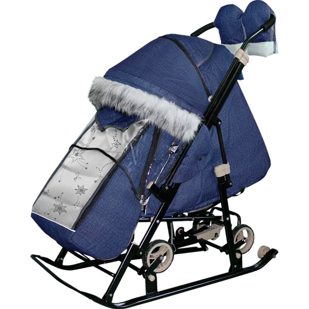 Санки коляска Galaxy Glory Gloss Лён синий + светоотражающая ткань
