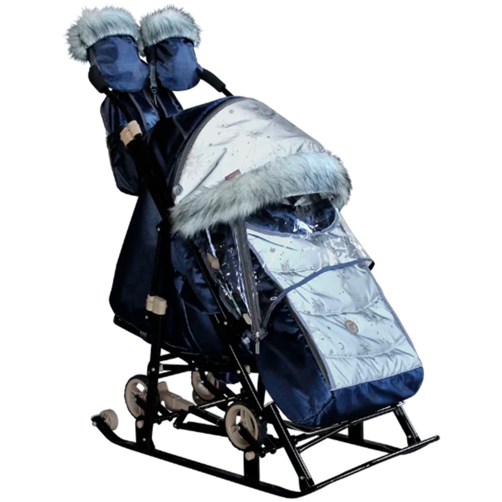 Санки коляска Galaxy Glory Gloss Сатин темно-синий + светоотражающая ткань