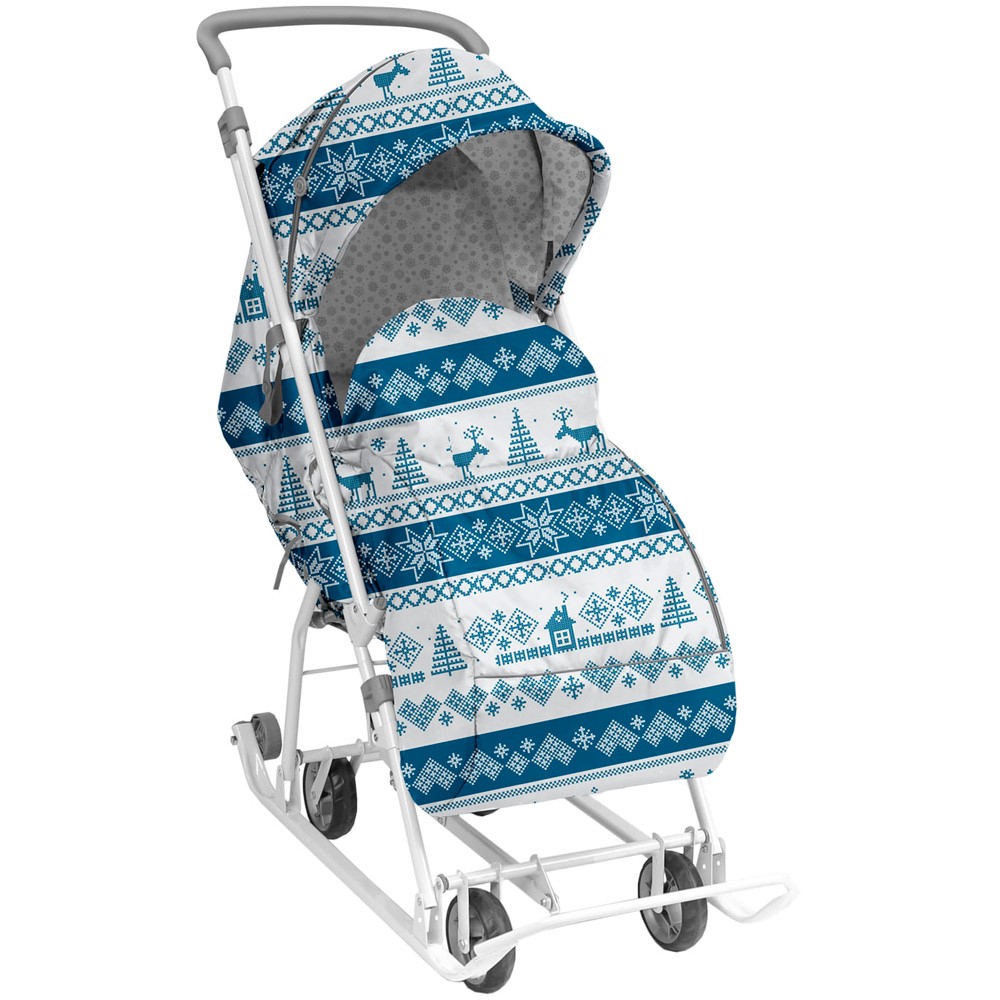 Санки коляска Наши детки НДТ3-1К/СС скандинавский синий /Ника/