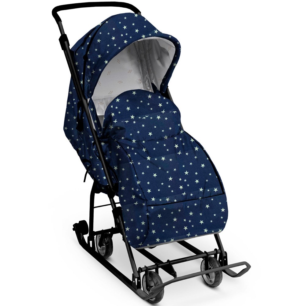 Санки коляска Наши детки НДТ3-1К/СЗ синий со звездочками /Ника/