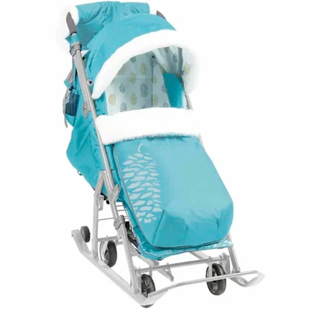 Санки коляска НД7-5К/МТ мятный с шишкой (серый каркас) /Ника/чехол д/ног, колесо, перекид. ручка