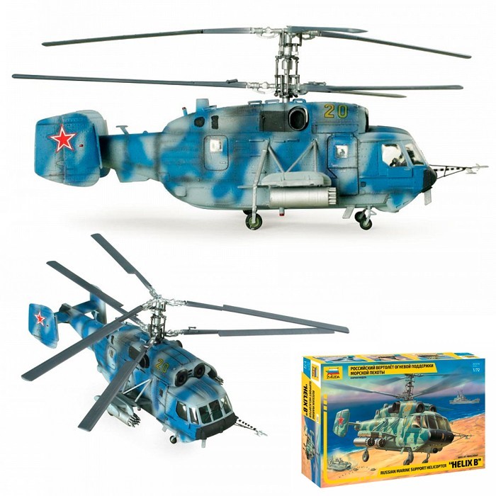 Вертолет Ка-29 был создан в 70-х годах в КБ им. Камова для нужд флота. Вертолет предназначался как для огневой поддержки наступающей морской пехоты, так и для перевозки взвода пехоты или для эвакуации 12 раненых на носилках.