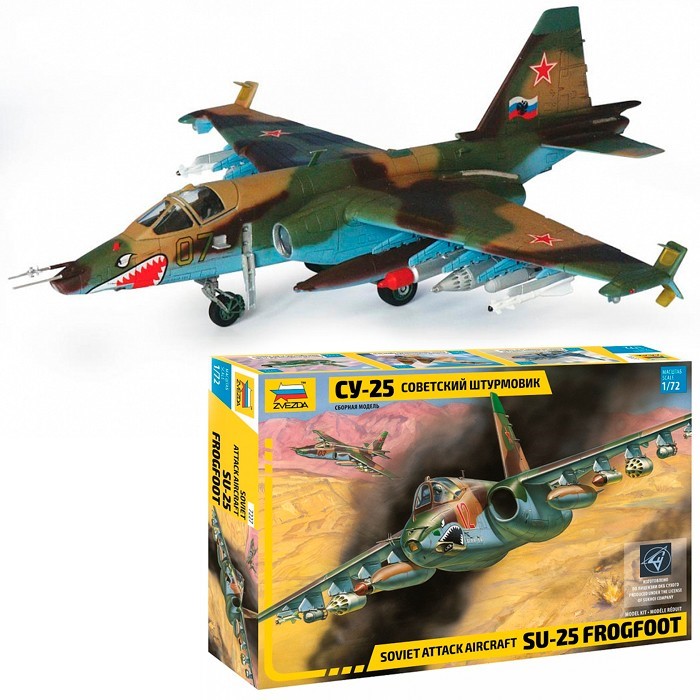 Первый полет самолета, получившего обозначение Су-25, состоялся в феврале 1975 года. На десяти узлах внешней подвески под крыльями Су-25 может нести до 4,4 тонны боевой нагрузки, включающей в себя бомбы, блоки неуправляемых ракет, ракеты класса «воздух-поверхность» с лазерной системой наведения, контейнеры с пушками.
