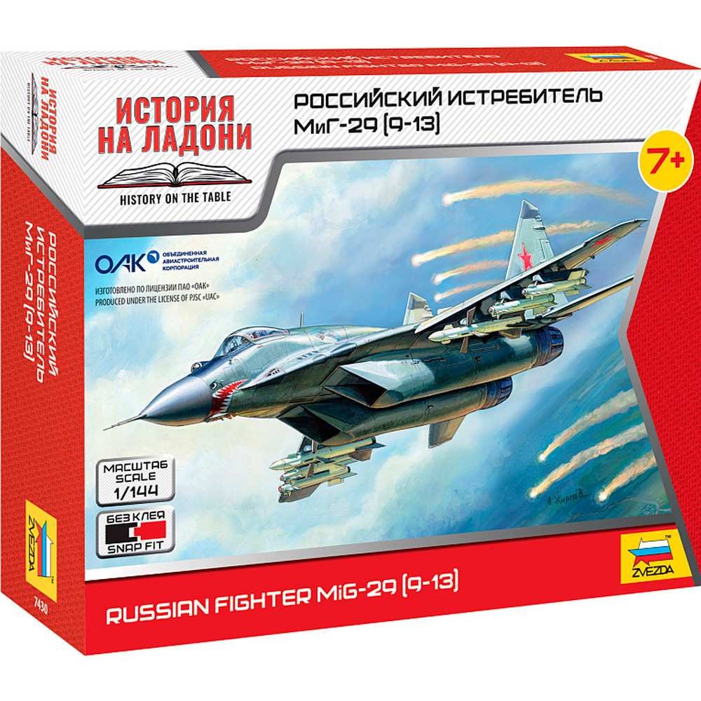 Набор конструктора от торговой марки Zvezda — это комплект для сборки уменьшенной копии российского истребителя МиГ-29С.