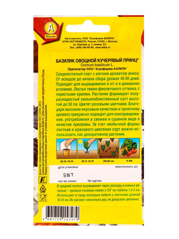 Семена Базилик овощной Кучерявый принц , Ц/П,8 шт.