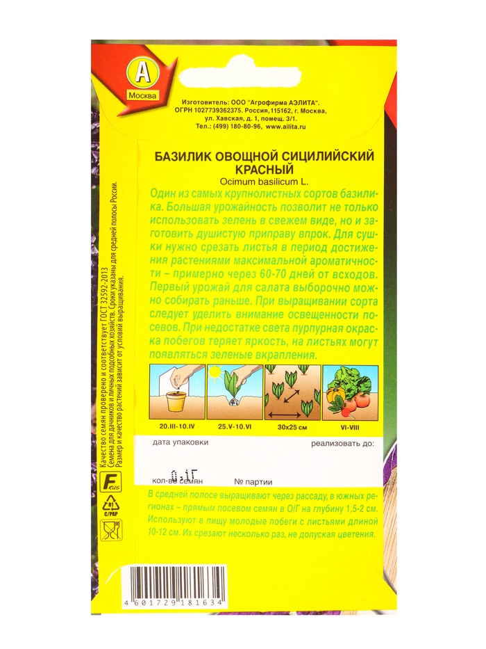 Семена Базилик овощной Сицилийский красный Популярные пряности, Ц/П,0,1 г (комплект 2 шт)