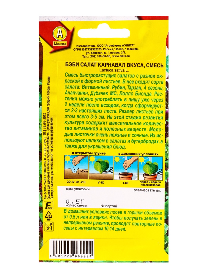Семена Бэби салат Карнавал вкуса, смесь, Ц/П,0,5 г (комплект 3 шт)