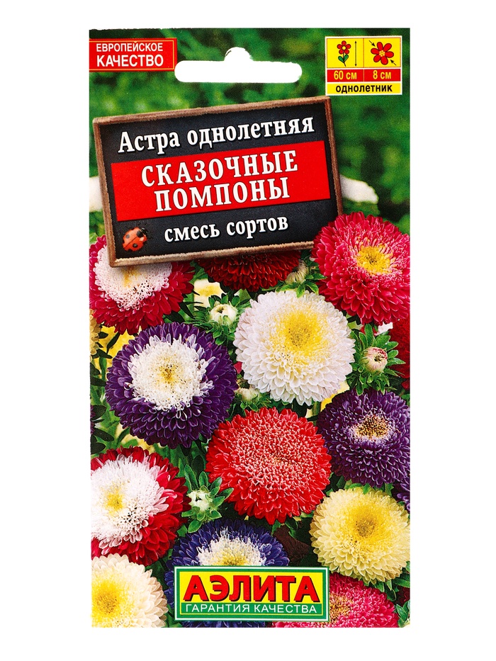 Семена цветов Астра Сказочные помпоны, смесь сортов , Ц/П,0,2 г (комплект 2 шт)