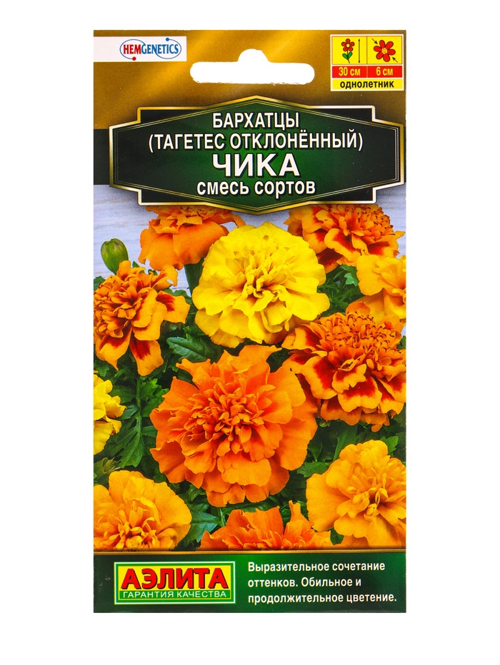 Семена цветов Бархатцы Чика отклоненные, смесь сортов С. Hem Genetics Золотая серия, Ц/П,7 шт. 1094