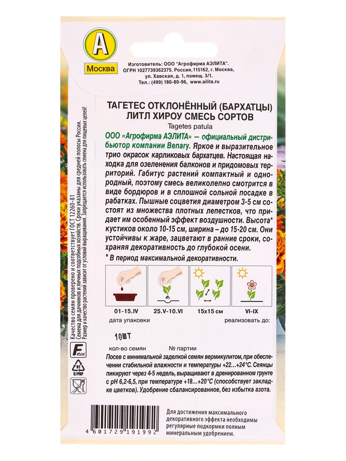 Семена цветов Бархатцы Литл хироу отклоненные, смесь сортов Спецсерия Benary, Ц/П,10 шт.