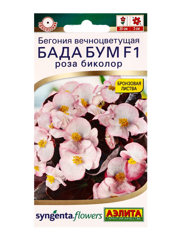 Семена цветов Бегония Бада бум F1 роза биколор (драже в пробирке) Спецсерия Syngenta, Ц/П,5 шт. 109 (комплект 2 шт)