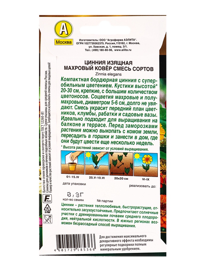 Семена цветов Цинния Махровый ковер, смесь сортов Золотая серия, Ц/П,0,3 г