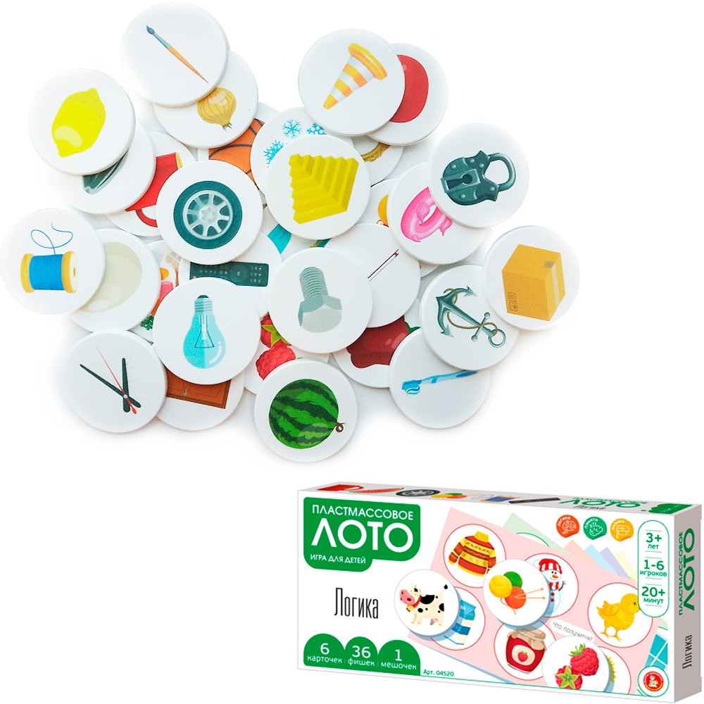 Лото пластмассовое «Логика» развивает способность мыслить логически, находить логическую связь между изображенными объектами, расширяет кругозор и словарный запас.