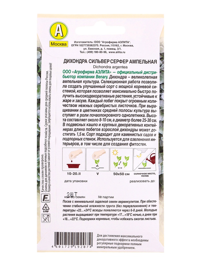 Семена цветов Дихондра Сильвер серфер ампельная Спецсерия Benary, Ц/П,3 шт.