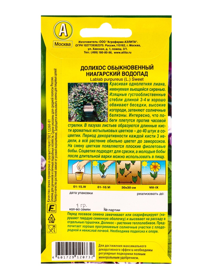 Семена цветов Долихос Ниагарский водопад , Ц/П,1 г