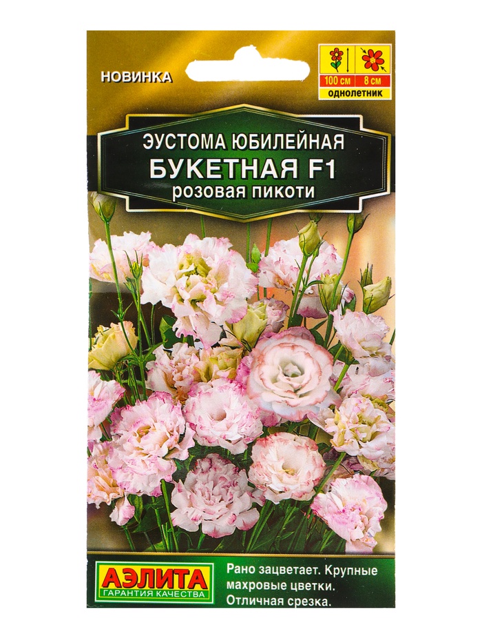 Семена цветов Эустома Юбилейная букетная F1 махровая розовая пикоти (драже) , Ц/П,5 шт.