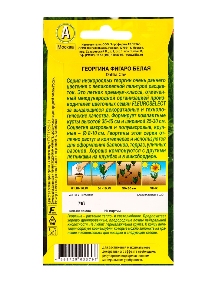 Семена цветов Георгина Фигаро махровая белая , Ц/П,7 шт.