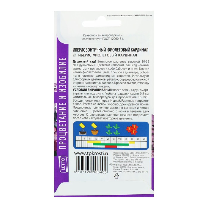 Семена цветов Иберис "Фиолетовый кардинал", 0,2г (комплект 10 шт)