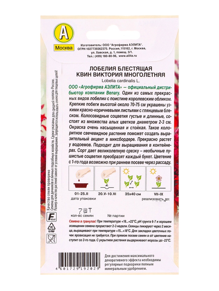 Семена цветов Лобелия многолетняя Квин Виктория Мн (драже в пробирке) Спецсерия Benary, Ц/П,7 шт. 10