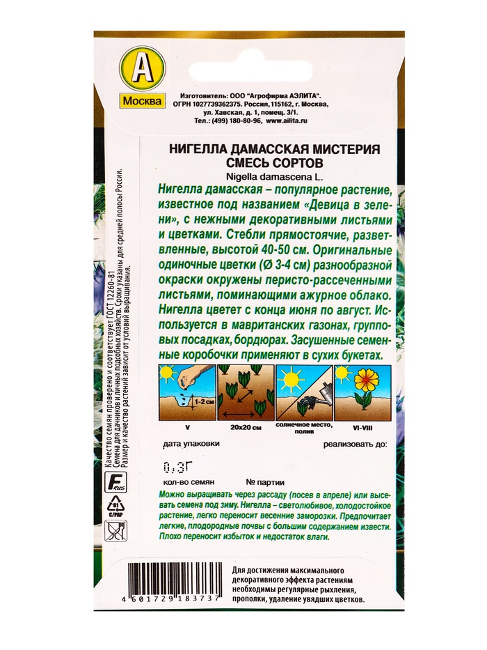 Семена цветов Нигелла Мистерия, смесь сортов Золотая серия, Ц/П,0,3 г