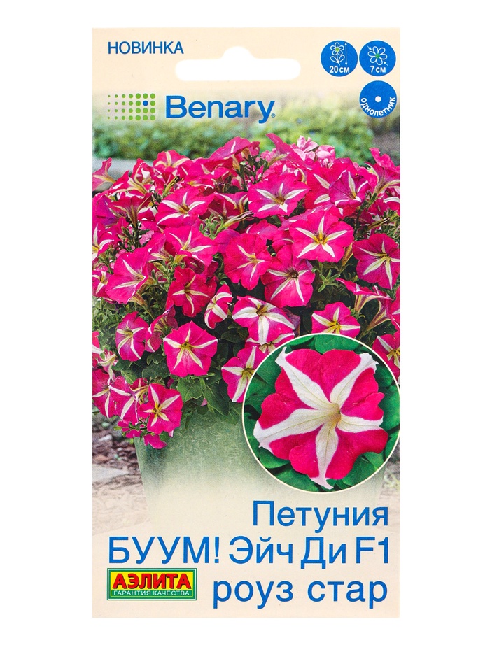 Семена цветов Петуния БУУМ! Эйч Ди F1 Роуз Стар многоцветковая (драже) Benary, Ц/П,7 шт.