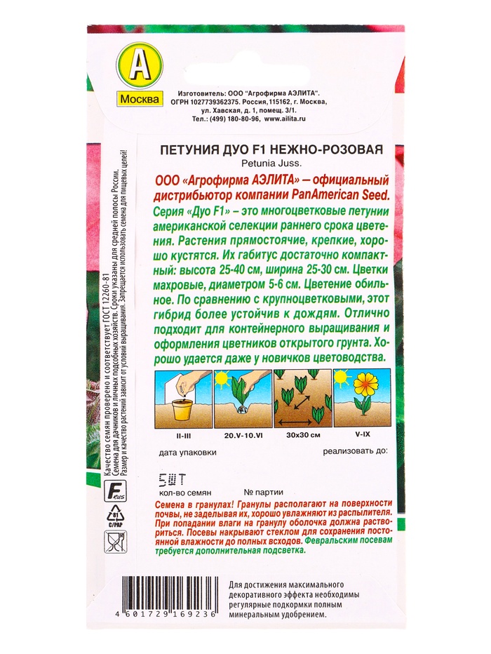 Семена цветов Петуния Дуо F1 нежно-розовая (драже в пробирке) Спецсерия PanAmerican, Ц/П,5 шт. 1094