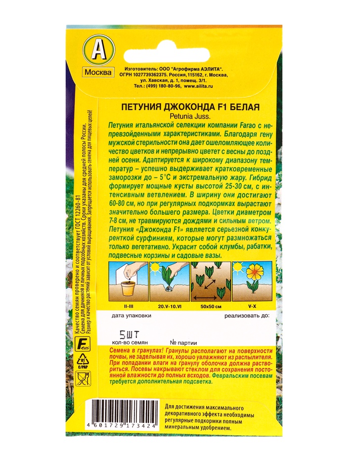 Семена цветов Петуния Джоконда F1 белая (драже в пробирке) С. Farao, Ц/П,5 шт.