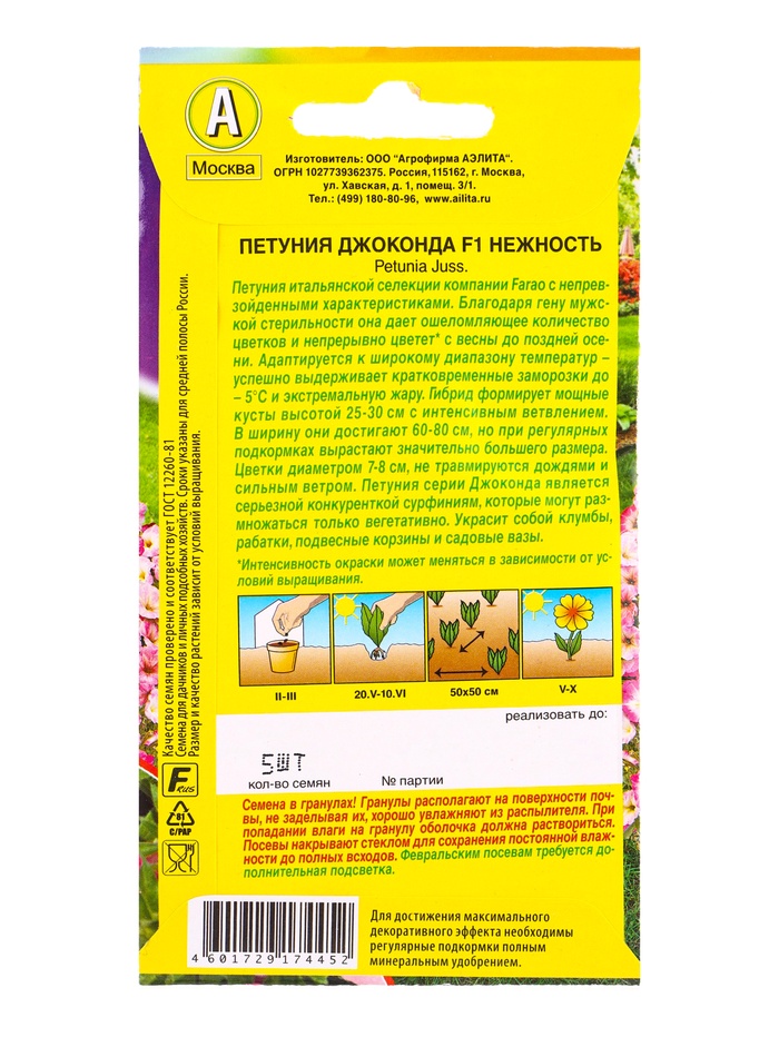 Семена цветов Петуния Джоконда F1 нежность (драже в пробирке) С. Farao, Ц/П,5 шт.
