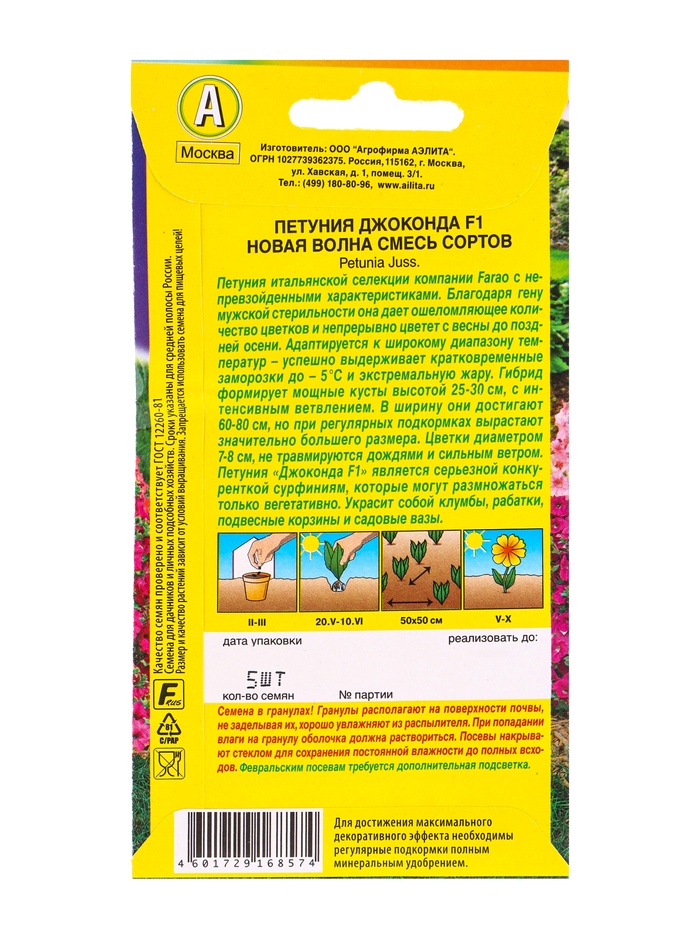 Семена цветов Петуния Джоконда F1 новая волна, смесь сортов (драже) С. Farao, Ц/П,5 шт.