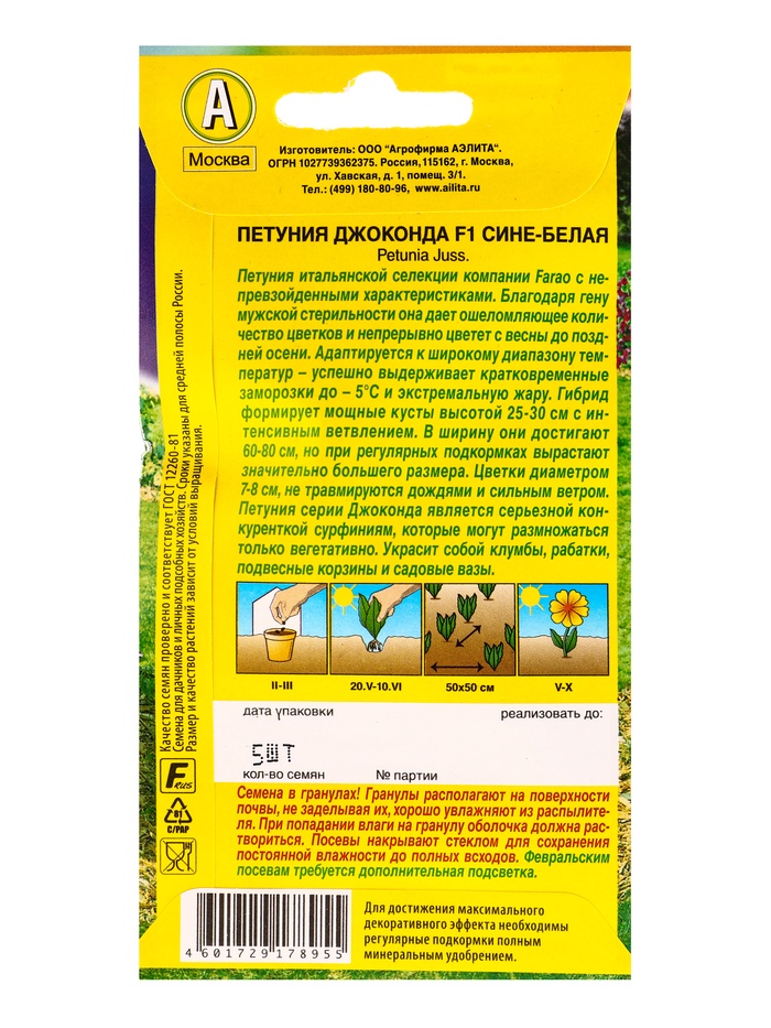 Семена цветов Петуния Джоконда F1 сине-белая (драже в пробирке) С. Farao, Ц/П,5 шт.