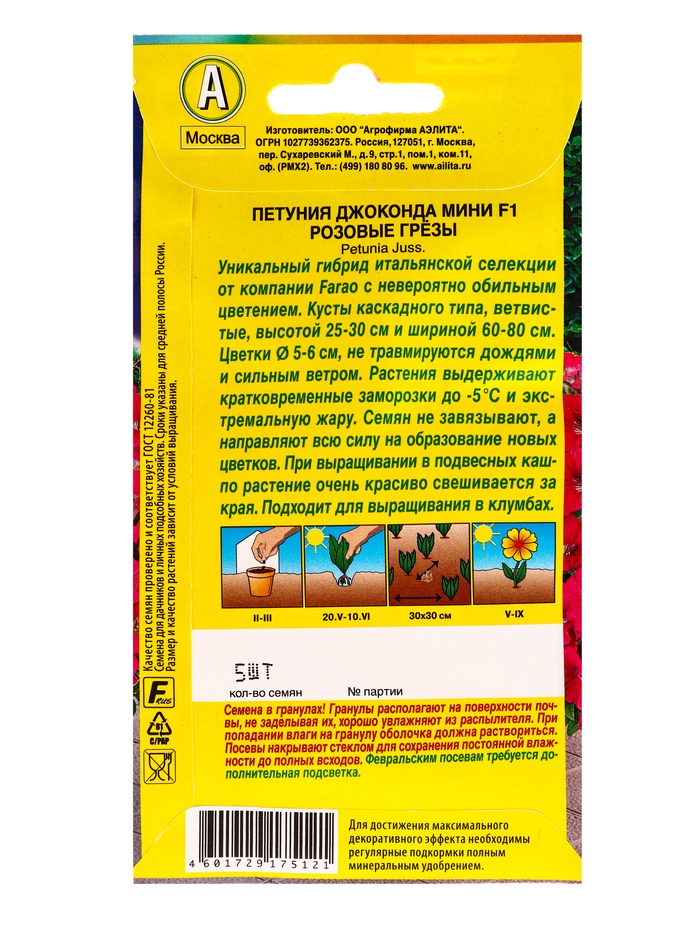 Семена цветов Петуния Джоконда мини F1 розовые грезы (драже в пробирке) С. Farao, Ц/П,5 шт. 1094570