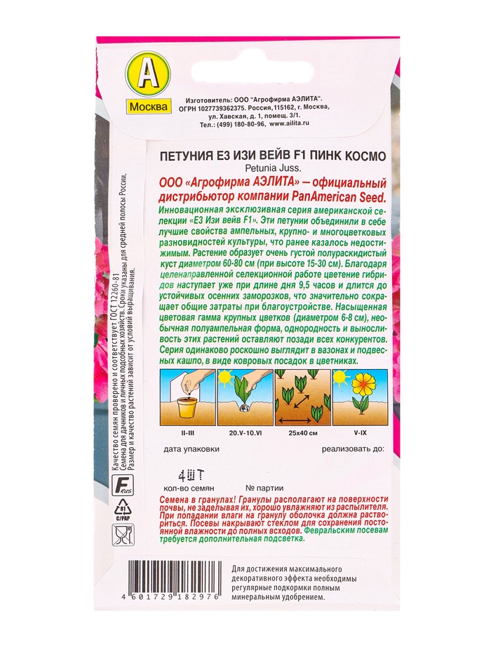 Семена цветов Петуния Е3 Изи Вейв F1 пинк космо (драже) PanAmerican Wave, Ц/П,4 шт.