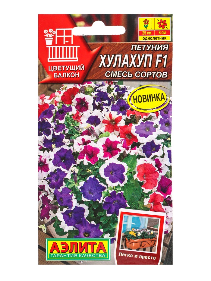 Семена цветов Петуния Хулахуп F1, смесь сортов (драже) С. Sakata Цветущий балкон, Ц/П,7 шт. 1094584
