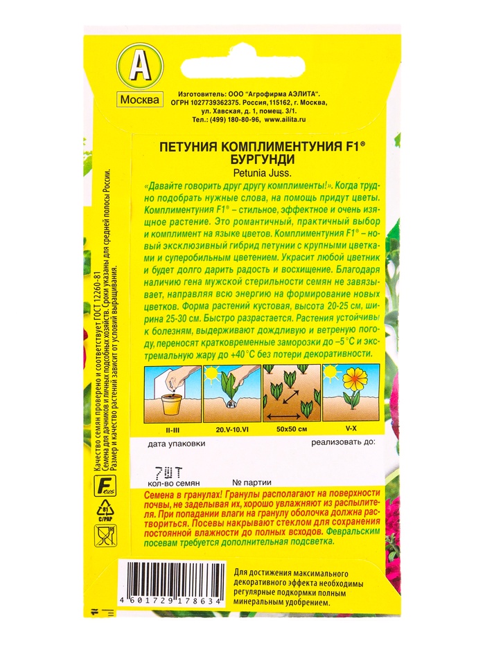 Семена цветов Петуния Комплиментуния F1 бургунди крупноцветковая (драже в пробирке), Ц/П,7 шт. 1094