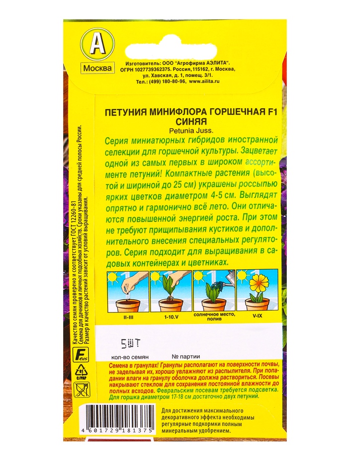 Семена цветов Петуния Минифлора горшечная F1 синяя (драже в пробирке) Цветущий балкон, Ц/П,5 шт. 10