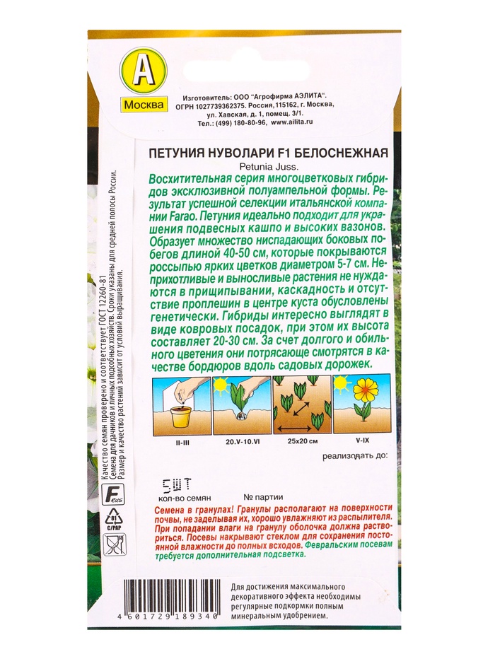 Семена цветов Петуния Нуволари F1 полуампельная белоснежная (драже) С. Farao , Ц/П,5 шт.