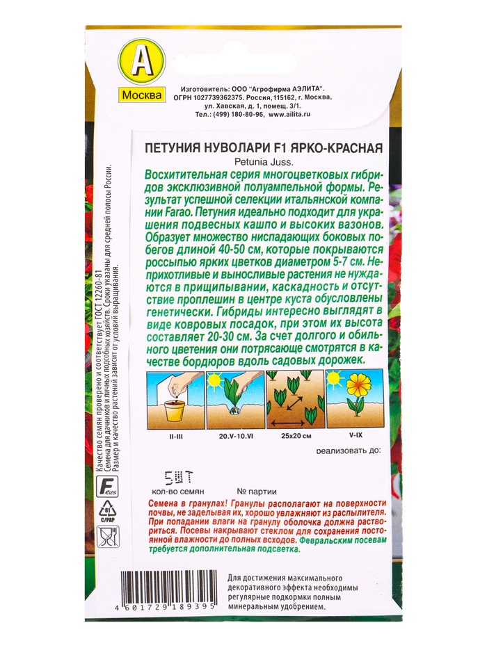 Семена цветов Петуния Нуволари F1 полуампельная ярко-красная (драже) С. Farao , Ц/П,5 шт.