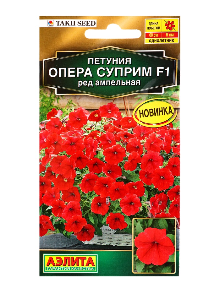 Семена цветов Петуния Опера суприм F1 ред ампельная (драже) С. Takii Seed , Ц/П,4 шт.