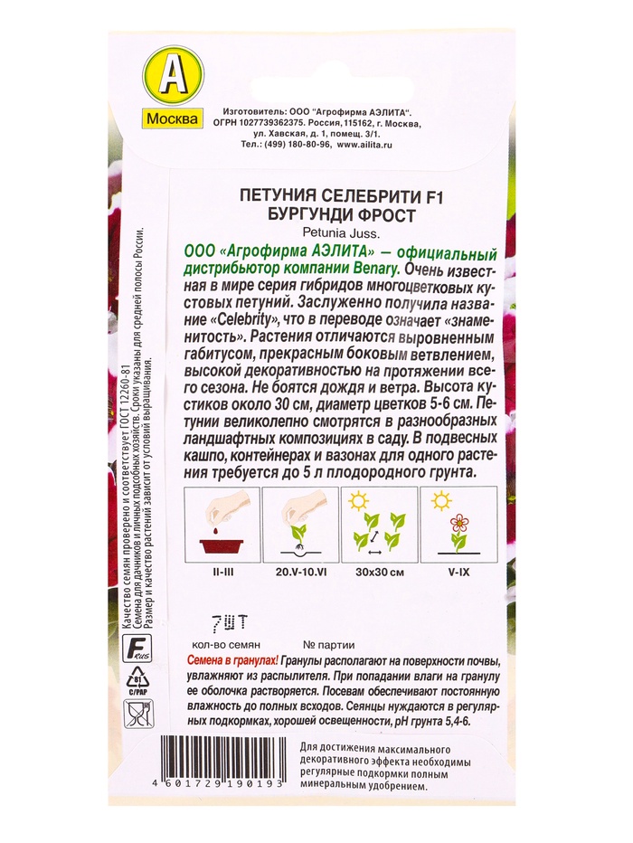 Семена цветов Петуния «Селебрити», F1, бургунди, многоцветковая, драже, Benary, 7 шт.