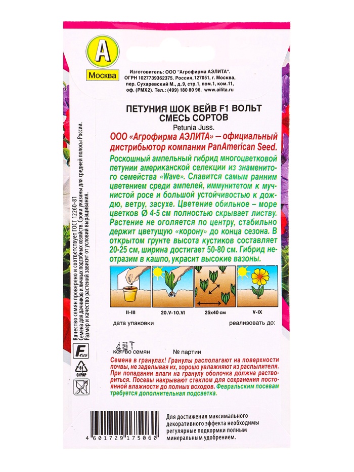 Семена цветов Петуния Шок вейв F1 вольт, смесь сортов (драже) PanAmerican Wave, Ц/П,4 шт.