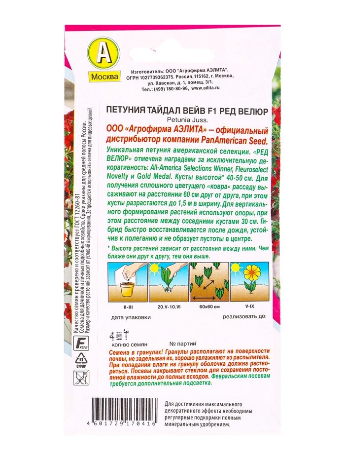 Семена цветов Петуния Тайдал Вейв F1 ред велюр (драже) PanAmerican Wave, Ц/П,4 шт.