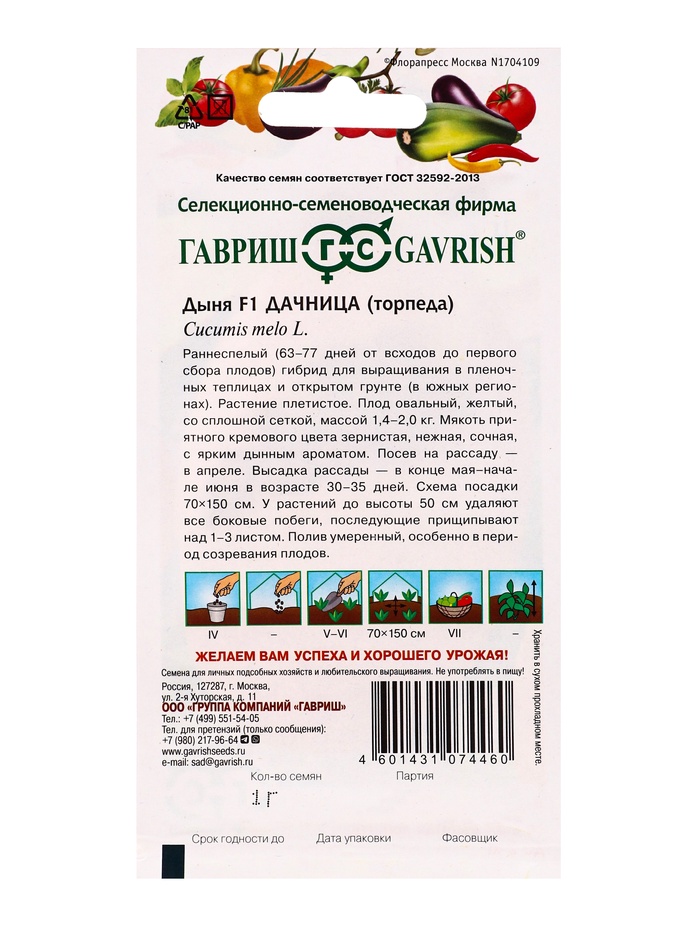 Семена Дыня «Дачница», F1, 1 г, ранняя, «Гавриш» (комплект 3 шт)
