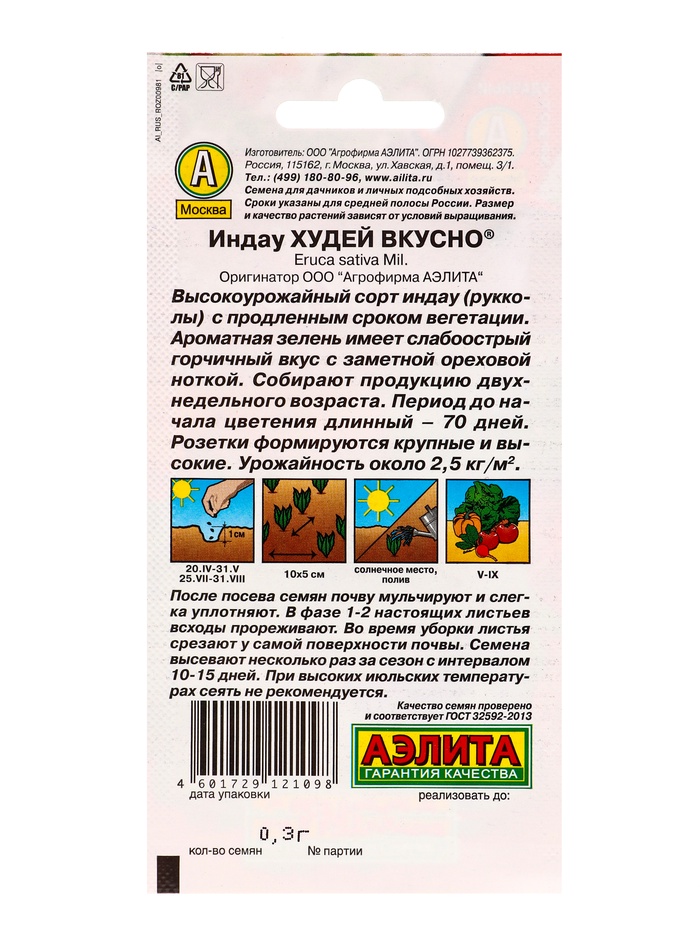 Семена Индау (руккола) Худей вкусно , Ц/П,0,3 г