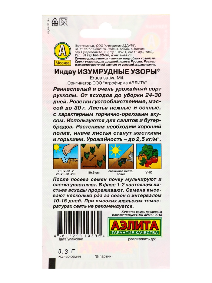 Семена Индау (руккола) Изумрудные узоры , Ц/П,0,3 г