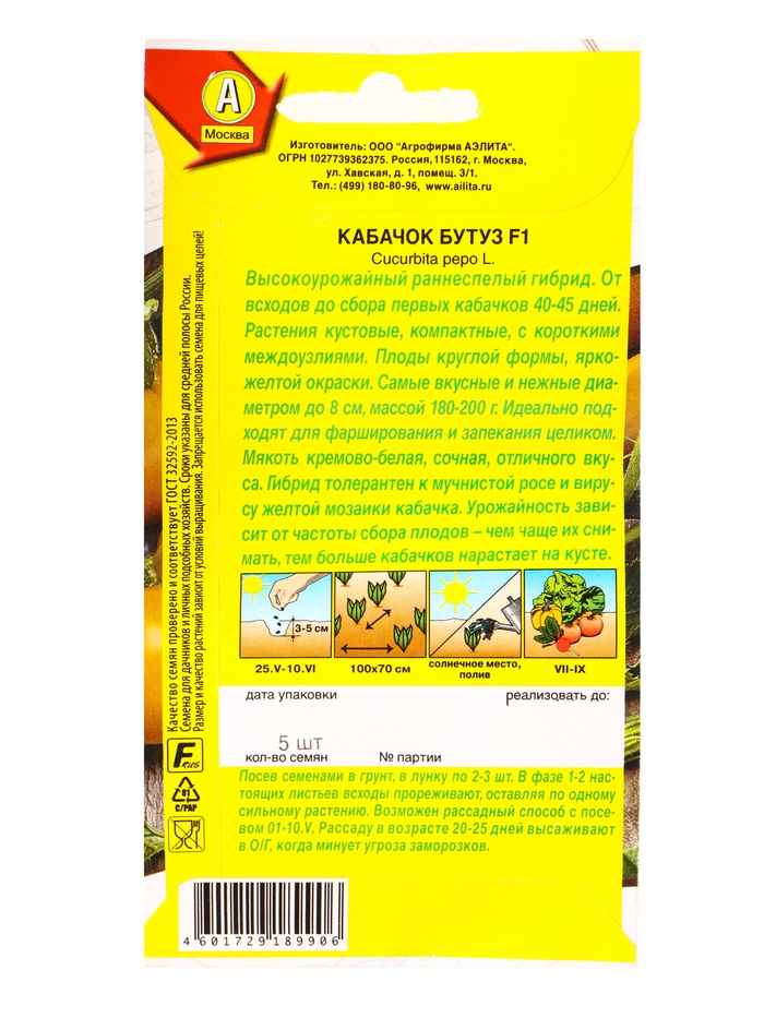 Семена Кабачок цуккини Бутуз F1 Мир высокого урожая, Ц/П,5 шт.