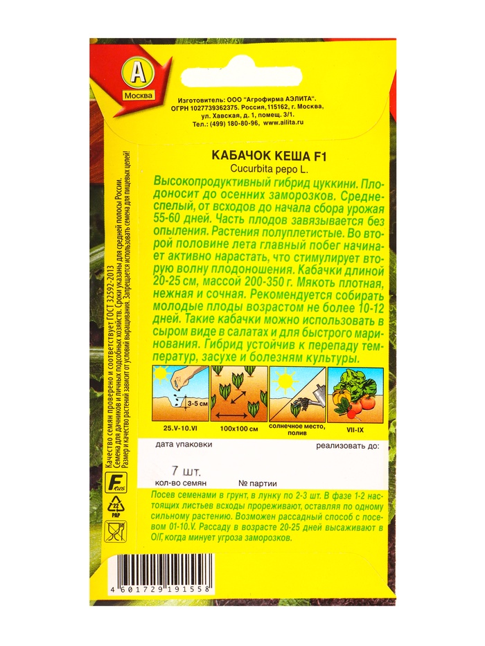 Семена Кабачок цуккини «Кеша», F1, 7 шт., «Агрофирма АЭЛИТА»