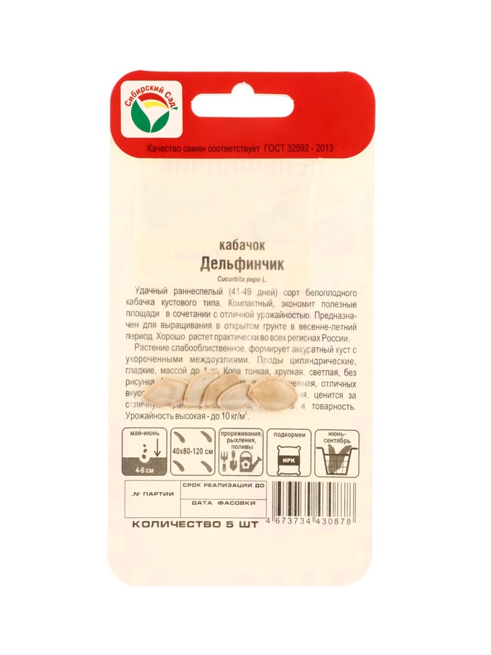 Семена Кабачок «Дельфинчик», 5 шт., «Сибирский сад» (комплект 3 шт)