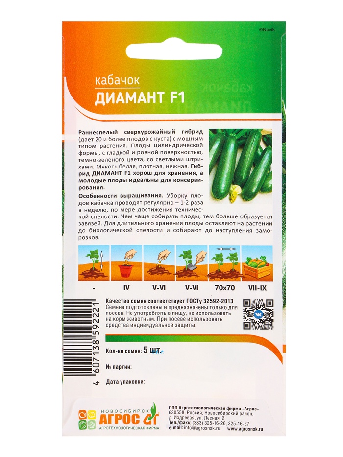 Семена Кабачок "Диамант" F1 5 шт (комплект 2 шт)