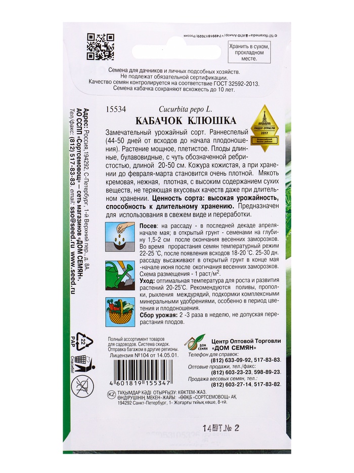 Семена Кабачок Клюшка 14 шт (комплект 3 шт)