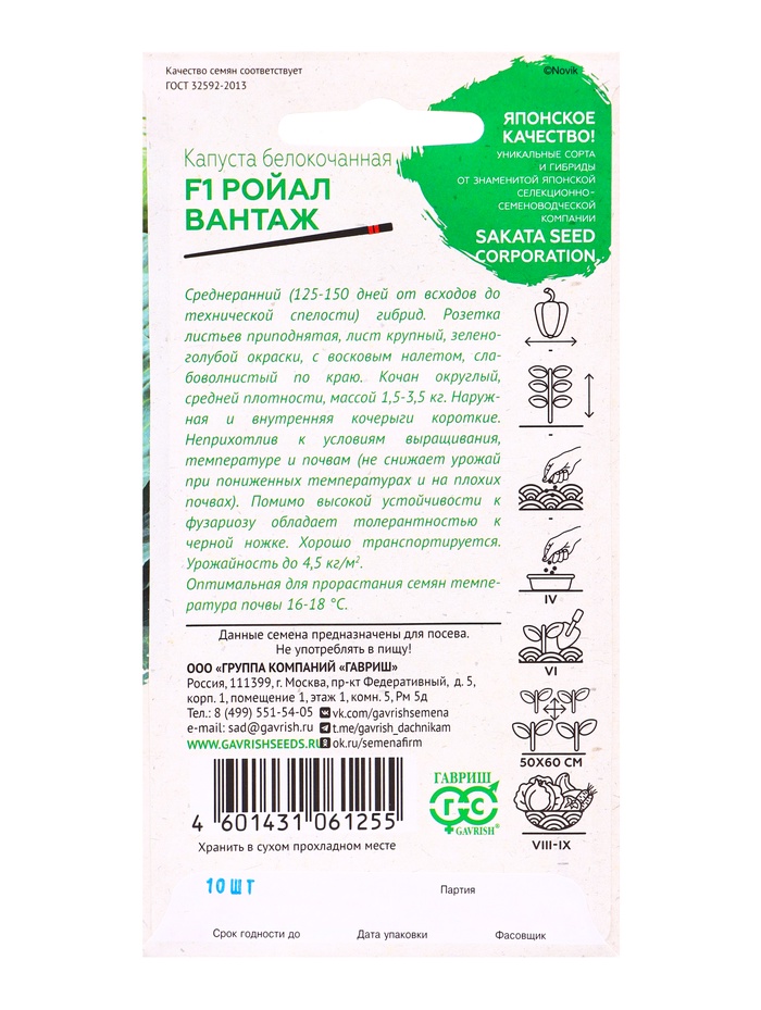 Семена Капуста белокочанная «Ройал Вантаж», F1, 10 шт., ранняя, Sakata